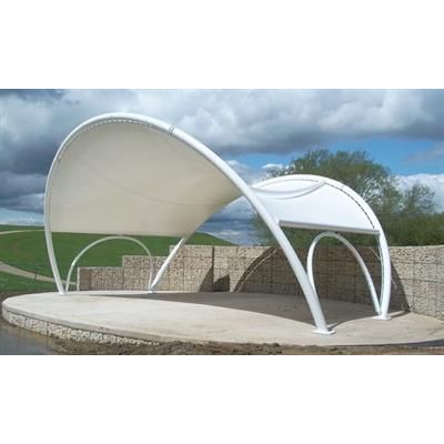 Fabric PVC coated polyester with weldable PVDF lacquer - design life 18 years or high translucency silicone coated glass fabric - design life 25 years. Both fabrics fire rated. White & cream as standard - option for 4 colors.