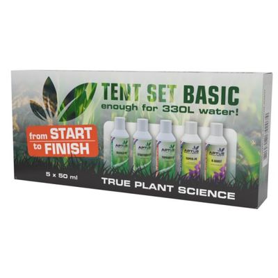 The Aptus Tent Set Basic contains all the essential Aptus products in convenient, small bottles. Aptus Tent Sets are perfect for anyone who wants to experience the power of Aptus. Are you a beginner or a small-scale grower? This is the set to get you started!