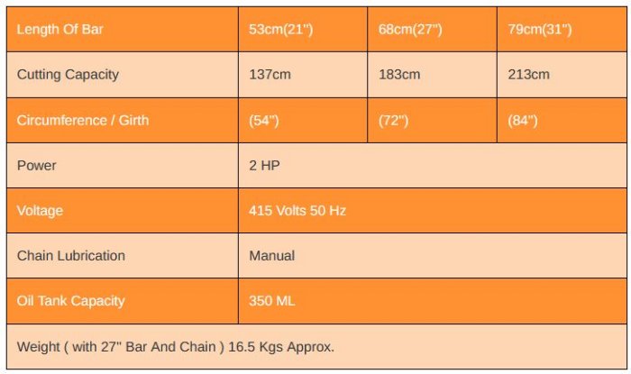 SHAPURA` One Man Chain Saw Machine is an ultra modern wood-cutting equipment specially developed to suit Timber Industries. This machine is used in saw mills for log cutting and in timber industries for cutting logs to size and is also used for other purposes cutting like plastic, fiber, cotton bales etc. Saw mill owners have very much appreciated this machine because it saves time, labour and money, This machine is light in weight and can be carried from one place to another. This machine is built with specially developed 2 HP motor with an Imported Guide Bar and saw chain, As the machine is absolutely maintenance free, this saw will always be ready to use for years to come.