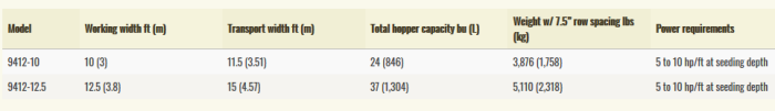- Low profile seed boxes feature capacities of 2.4 bushel per foot
