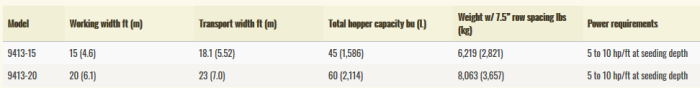 - Large capactiy seed boxes hold 3.75 bushel per foot of seed