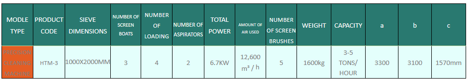 The product, which is emptied into the hopper on the hood with the elevator, is transferred to the upper basin. While the product separated in the upper vessel passes through the middle vessel, the product is first cleaned by vacuuming with a hood. The product, which is cleaned from the upper and middle vats, is separated into two dyes as above the sieve and below the sieve with the help of the lower sieve. While the coarse products remain on top, the clean (clear) product remains at the bottom. Thanks to the brush system under the sieve, there is no clogging in the sieves. The most appropriate cleaning process is carried out by determining the sieve structure and hole diameters according to the product. Maximum capacity is achieved with specially designed sieve sheets.