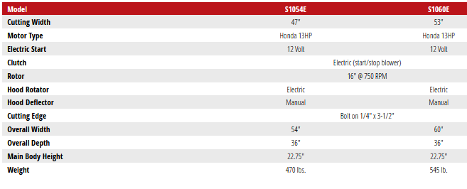 Thrower - Model S1054E & S1060E -Self Powered Snow Tool