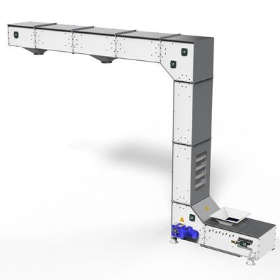 The most important difference from standard z elevators is the ability to discharge product at more than one point. In processes where more than one z elevator is needed, a solution can be produced with a single elevator. Special automation and air installations are needed in multi-pour systems. The pouring process is done with the help of “pneumatic elements”.