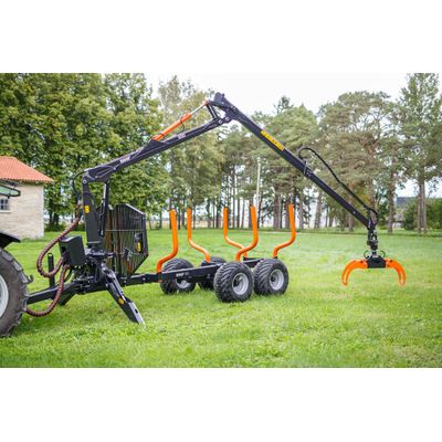 Timber crane with telescope, max reach 6,5m. Timber crane for your forestry. This crane comes with a telescope and a max, reach up to 6,5m. This crane is a high-performance machine featuring quality workmanship. Expandable with our accessories range.
