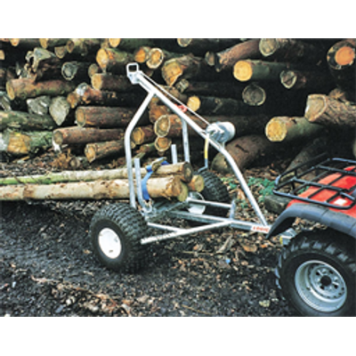The THT200 UTV ATV Timber Hauler is a trailer designed to be used with an ATV/UTV to extract long lengths of timber from areas with limited access or from areas that may be inaccessible by other vehicles. Ground damage is kept to a minimum as both ATV/UTV and the THT200 have excellent low ground pressure properties. The leading end of the timber is lifted up using the winch cable and is then lowered into the ‘U’ shaped cradle which features teeth that grip the load. The timber is then secured using the strap supplied. The cradle sits on a turntable which means the whole unit is very manoeuvrable as this allows the trailer to turn independently of the load. This feature avoids situations where the trailing load would otherwise cause the trailer to tip over when cornering tightly. The ‘U’ shaped cradle features swing-down legs that are used to assist unloading – simply remove the securing strap, withdraw the locking pin and drive away.