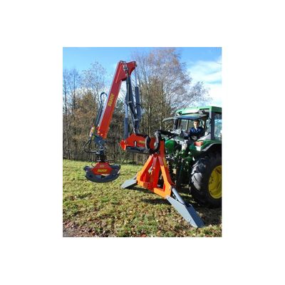 Tractor power rating: 90 hp to 150 hp. Ranges: 5 m or 6,4 m. Flap-Down support: Best choice if the machine is mainly used for loading and unloading. Support wheels: Maxiumum performance for dragging logs because of the support wheels - less pressure on the tractor.