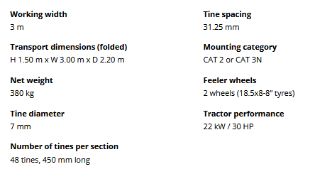 - Uniform application of pressure by the forks on the harrow sections on undulating ground due to individual suspensions and lateral compensation of each individual fork