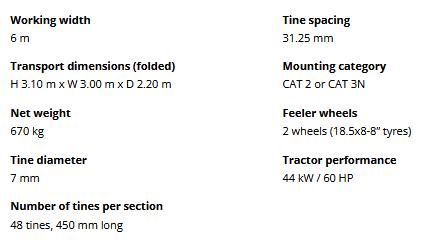 - Uniform application of pressure by the forks on the harrow sections on undulating ground due to individual suspensions and lateral compensation of each individual fork