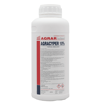Dilute 100 ml of Agracyper 10% with 100 litres of clean water and mix well. When dipping, submerge the animal for at least 30 seconds, ensuring skin saturation and submerge head at least once.