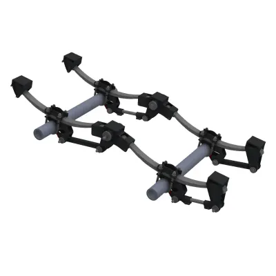 The RCO 076 Mechanical suspension has been an industry standard bearer for more than 30 years, offering an ideal solution for heavy duty large capacity trailers travelling at high speeds. The cast steel construction insures a uniform, robust and high quality finish design, whilst the torque arm design offers support and axle alignment control suitable for high speed applications. Torque arms are assembled using high density poly bushes suitable for rough terrain applications. This suspension is available in Over-slung spring options to suit almost all capacity and stability requirements. In addition, the RCO 76 suspension is also available with extended axle centre length of 1850mm.
