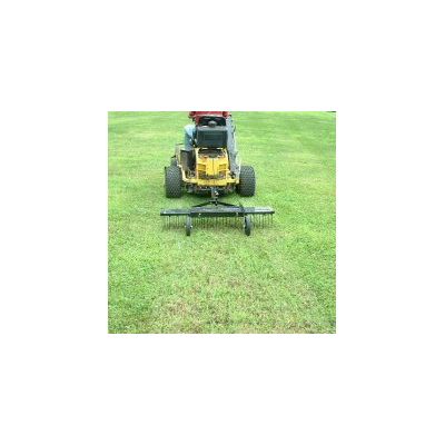 Both units are made of an all steel construction with four rows of 3/16" spring steel tines. The hitch pin mount design can be towed behind without de-thatching by placing the lift handle in the transport position. Thatch is an accumulation of dead leaves, stems and roots in a tight organic layer over the soil surface.