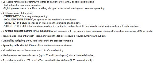 Spreading machine for compost, chopped straw…