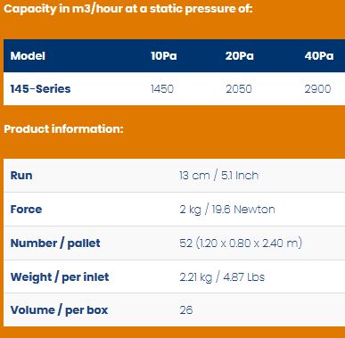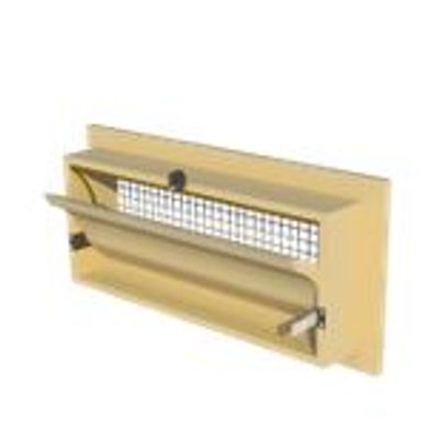 This air inlet has a flange on the backside of the house so it can be built onto the wall instead of being built in the wall. With a middle hinged inner valve the air will be divided and also flows underneath the valve when it is opened over 35%. The inlet is controlled by means of a stainless steel side arm. This inlet is executed with a curved inner valve so when it is opened for maximum ventilation air is also guide downwards to the animals. (also available in self-closing version)
