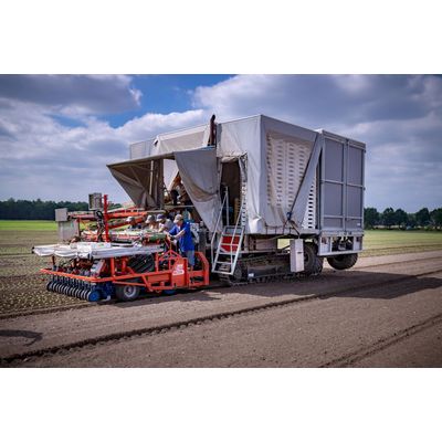 Stable machine on tracks with low ground pressure, Including trailer lift, Optional GPS for very accurate planting, Efficient crate supply and removal system, Save time by taking the whole trailer along.