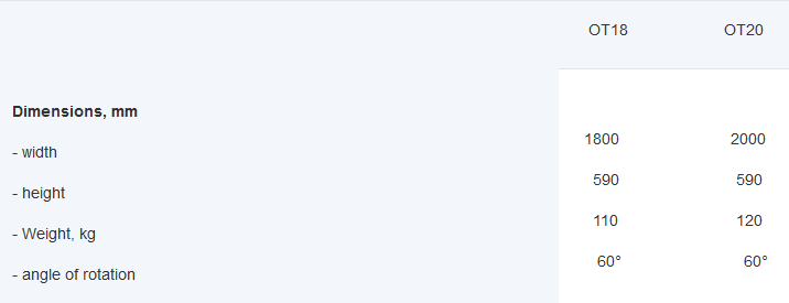 Tractor blade is designed for mechanized cleaning of roads, streets, sidewalks and industrial areas from sand, debris and snow in municipal utilities. Tractor blade ОТ18 is designed for tractor "Belarus-320" and OT20 - for tractor "Belarus-422.1"
