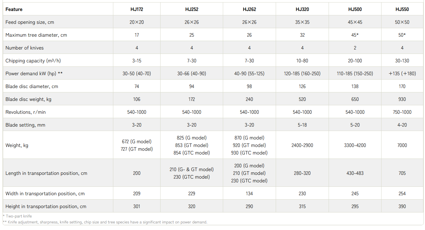 The HJ550 chipper takes disc chippers to a whole new level and to a new performance class. The well-known excellent chipping quality, low power requirements and low maintenance costs combined with new features make this new HJ550 model a very competitive alternative, even for larger drum chippers.