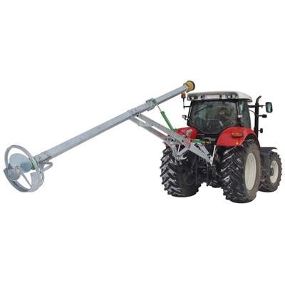 Mixer shaft 120*120*4 with sturdy shaft. Mixer blades with guards. Pto connection 1 3/8" with guard. Universal lifting frame for attachment to tractor hydraulics. With swivel device for insertion into small pit openings. Two hydraulic cylinders to swivel the lfiting frame. Without additional swiveling aid. Mixer shaft and blades galvanized. Minimum pit opening: 80 x 80 cm.