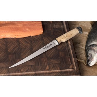 Award winning fillet knives made for the serious angler. Both salt and fresh water fishermen report dozens of large fish can be filleted without ever touching up the blade. These professional quality knives are available in 6 or 8.5 inch blade length with tough canvas Micarta or ultra-light cork handles.
