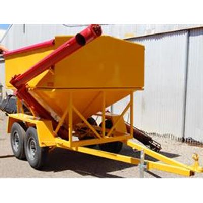 McDougall Weldments offer a variety of trail feeders from 10 bags to 45 bags. The 10 bag to 25 bag has a single axle with a pull cord lever for operation. Roll tarp can be purchased as an extra if required. We have a 45 bag feeder, with a division in bin available. This is a tandem axle feeder with a roll tarp and a 6.5hp motor. An unloading auger can be added on the 45 bag feeder with a choice of the positioning, eg. rear or side.