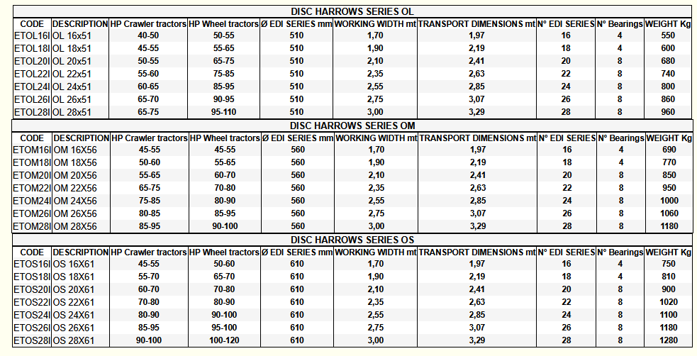 Mipe-Viviani - Model OL/OM/OS Series -Trailed Discs Harrow