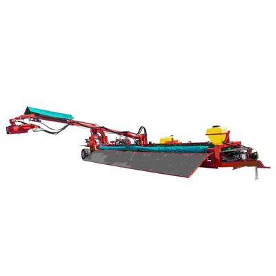 The cloth, conveyor belt, and cleaning blower are all infinitely adjustable from the rear operator`s seat.