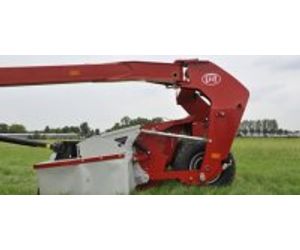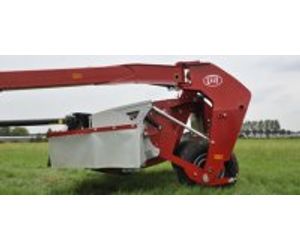 The machine`s frame includes two double acting rams to control ground pressure as well as lifting the mower. The piston rods on either side of the mower are connected on one side to a single-acting ram that forms part of a closed hydraulic circuit. By adjusting the pressure within the system, the operator controls the mower ground pressure from the tractor cab. Consequently, the operator can adjust to changing field conditions with great ease and speed.