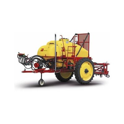 Painted steel frame. Polyethylene main tank,system washing kit and handwashing kit. Graduated level gauge. Low pressure pump. Ø13mm 5 ways manual proportional control unit. Suction filter. Quick coupling for tank filling hose. Tank agitation system through water tank return. Tank inside washing kit. System washing kit with by-pass valve. Variable track axle (1400-1800mm, 1800-2100mm reversing wheel centre, with standard hubs and wheels). Ladder .tracking drawbar hitched to the tractor elevator arms. 230/95 r36 (9,5 r36) wheels , 8 hole hubs. 1200mm stroke hydraulic height adjustment, with quick coupling (1 single- acting tractor control) . Self-levelling device with remote locking control. Manual rear folding boom. Quick coupling type unijet, fan 04 nozzles (kematal). Jug for nozzles check.