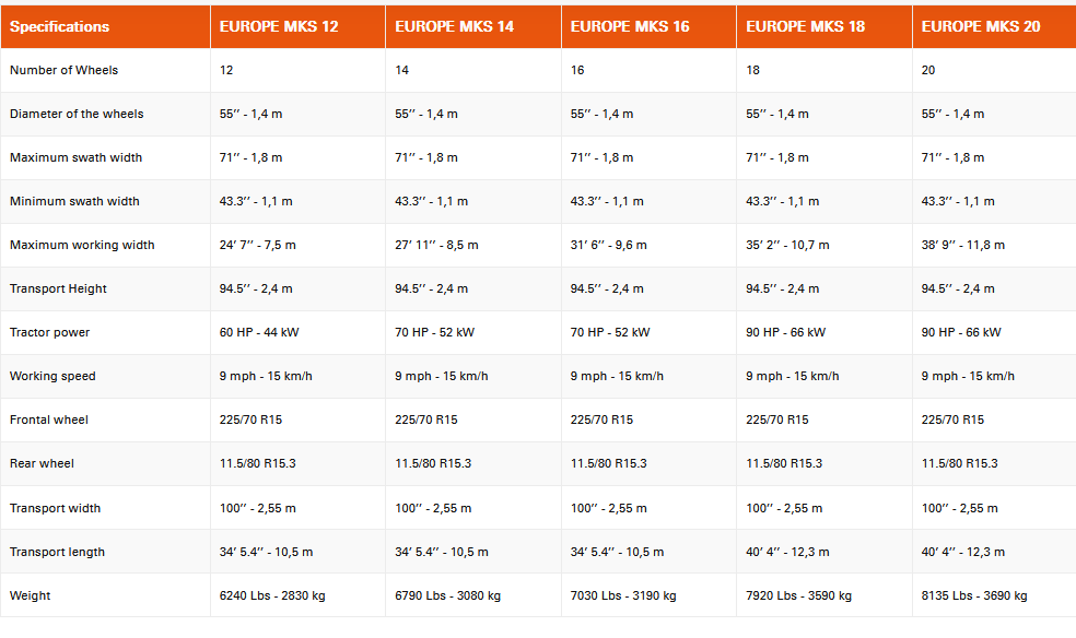 Sitrex - Model MKS Europe Series -Trailed Wheel Rakes