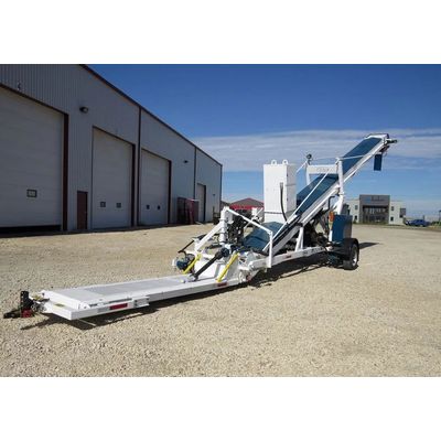 The economical 24” Transloader is a completely self-contained unit designed to meet your transloading needs from railcars to semi-trailers or vice-versa and truck to truck. Transloaders are designed to efficiently load and unload granular products such as fertilizer, seeds, sand, coal, frac sand, aggregates, etc. Its low clearance conveyor easily slides under rail cars or trailers and its top end height allows for easy loading. This 3 wheeled unit is powered by the front and one of the rear wheels for best traction and steering control. The front-wheel pivots 45° left and 45° right.