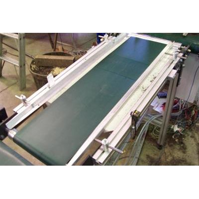 (2EA) 1.8m x 430mm Manual Transplant Conveyor . Includes variable speed drive. 4 adjustable tray tables to hold cuttings. All aluminium frame construction.