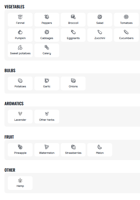 Touch Smart Efficiency! Transplanter with distributor from 1 to 6 perforating cups. Double use with and without mulching film, also biodegradable, row-to-row spacing adjustable from minimum of 50 cm/20″; estimated production up to 3.000 plants/hour each operator. Ideal for tomatoes, melons, watermelons, salads, pumpkins and courgettes. On request electric watering device, localized and synchronized each plant and SEEDPROe sowing unit.