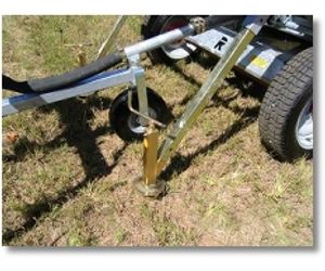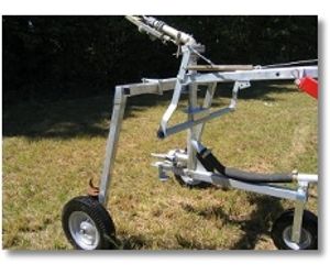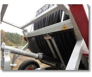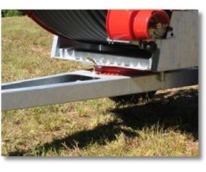 The galvanized cart has an adjustable width and height facility. The cart is automatically loaded the end of the irrigation run disengaging the drive system.