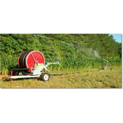 Covering 3 to 4 acres per pull the GX540 traveler has been introduced to provide an economical answer to agricultural irrigation by combining accurate, low cost hose reel irrigation with a simple and efficient drive system. The 4 speed gearbox can achieve speeds of over 350 feet per hour to give a light application of water to delicate crops making the GX Series a versitile irrigation traveler. GX machines all have accurate speed compensation with digital speed read-out and clock.