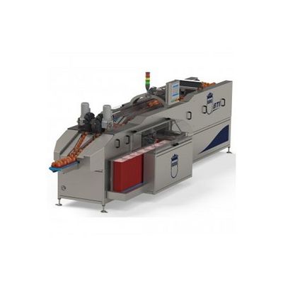 The BTI has: High capacity up to 75 packs per minute. Suitable for round products of Ø50-90mm. Machine adjusts to the product fully automatically, no manual adjustment required. Automatic control of product supply to BTI. Nesting trays with the following dimensions: Length: 140-300 mm. Width: 140-180 mm. Height: 20-40 mm. Manual entry of trays possible.