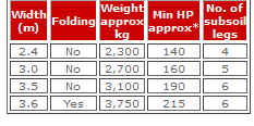 - Hydraulic auto reset legs @ 600mm spacing (max 380mm deep)