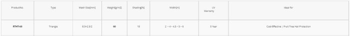 EyouAgroModel RTHT-60 -Triangle Hail Netting