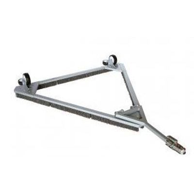 Triangle sweeper for artificial turf with self-supporting frame to install linear brushes with PPL bristles and ball tow hook. A constant use of the machine allows to keep a soft and homogeneous infill and at the same time strengthens the fibers of the turf by lifting up and decomposing them. 4 transport wheels fixed on the frame guarantee an easy handling when not in use.