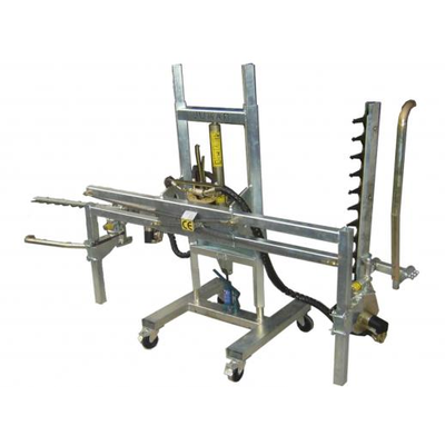 Constructed on a bilateral mast. Allows total visibility of the working area. 850 mm cuts with manual positioning.It has a mechanical scanner system, which allows a correct operation without damaging the tree trunk. Especially designed for growing olive tres on superintensive planting. The hydraulic opening system allows the user to adapt the cut to your planting size. Designed for working on a planting of between 3,5 and 4 metres wide. Possibility of adding a manual or electrical command.