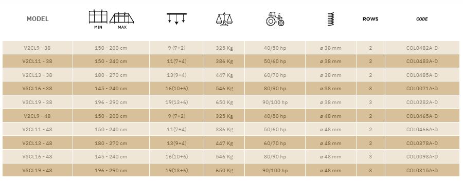 The triple-frame vibrotiller with 2 and 3 rows of shanks can be adapted to any requirements of cultivation of very hard and rocky soils thanks to the shock-absorbing shanks system and is suitable at working depth ranging from 10 to 25 cm.The base chassis allows the regulation of the working width according to its requirements.