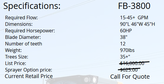 The Turbo Saw FB-3800 is designed to provide the ultimate in economy and productivity for large scale pasture reclamation where a smooth below-ground clear cut of the tree is required. The Turbo Saw FB-3800 uses a high speed cutting disc designed to maximize efficiency and power and allow operators to tackle anything from brush and vines to trees of any kind. The FB-3800 works with High-flow and standard flow skid-steers and features a 38” disc with replaceable carbide cutting teeth that last up to 500 hours of ground level cutting.