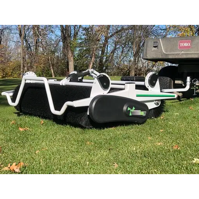 Many different vehicles can be used to tow the TB 220 Turf Brush. An industrial grade electric actuator raises or lowers the slowly spinning brushes in less than 4 seconds! This allows the operator to “stripe” the turf area with the brush if desired.
