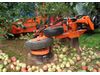 Tuthill Centipede side sweep is mid-mounted on the tractor and moves fruit from between the tree trunks and into the row ready for the harvester to collect. It is clears the fruit very efficiently from between the trees. The Centipede side sweep eliminates the need for a blower.
