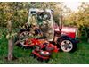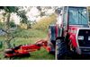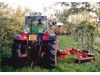 It has two pneumatic tyres to guide itself round the trees. Adjustable height control wheels within the brush allow it to follow the ground contours precisely. It works equally well when working on grass or in an orchard with herbicide strips. Adjustable compensating springs enable the machine to be set for particular ground conditions.