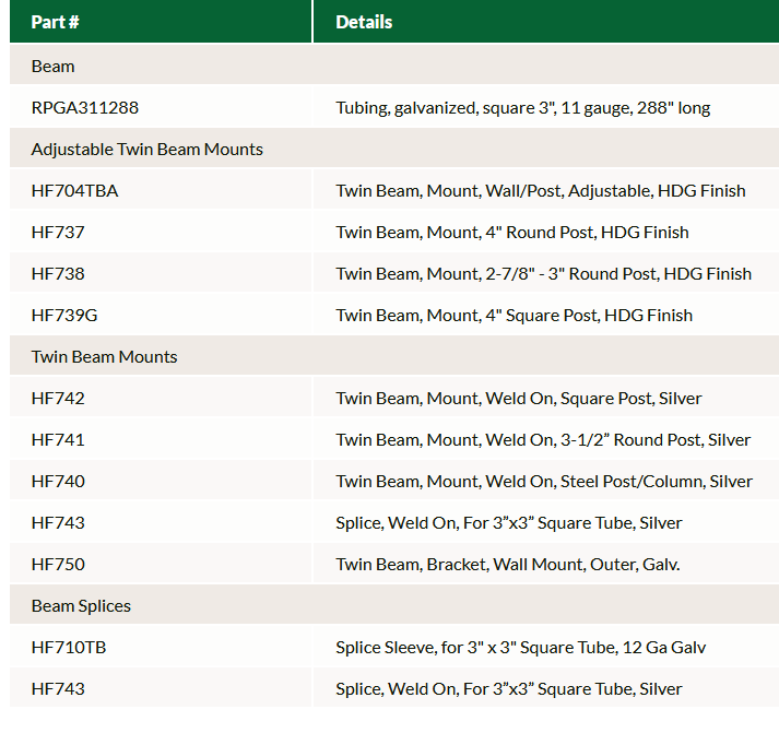 - Head to head and single row installations available