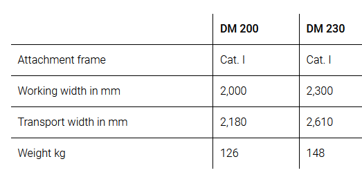 The two Busatis-Bidux DM 200 and 230 twin-blade mowers are lightweight and delicate front mowers for universal use, especially for lightweight Metracs. The twin-blade mowing system cuts the forage particularly gently and cleanly. With a weight of 126 kg or more, the twin-blade mowers are truly lightweight.