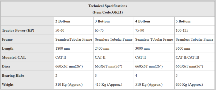 Mounted Disc Plough can handle the toughest ploughing jobs. For extremely hard ground and soil with large roots and other obstructions, one can obtain outstanding penetration performance. For soft sticky ground and sandy soil, depth can be controlled through the built-in depth control. The under frame and unit-to-unit clearances are adequate to cope with trashy conditions. Perfect alignment of the sub-beams carrying the Disc bottoms is maintained by virtue of the frame construction. An adjustable and spring-loaded furrow wheel takes care of the side draft and the implement moves smoothly. Disc tilt angle can be varied in three stages to perform on various types of soils.