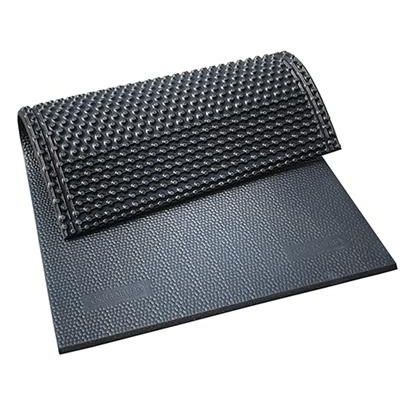 Softness through double structured stud profile. Rugged, dimensionally stable and durable. High dimensional stability. Integrated soft slope to rear edge improves drying off. Dirt barriers minimize soiling underneath the mat.
