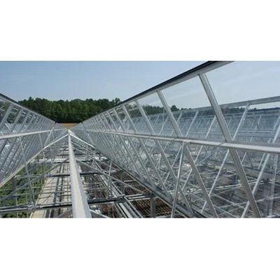 Van Wingerden Greenhouse Company`s roofs are designed with a 30 degree slope. This allows for increased roof area, improved condensation control and better light transmission. Other roof components are aluminum extruded hollow gutter sections, complete with aluminum extruded hinge and condensation control cavity; optional aluminum extruded half moon drip gutter; aluminum extruded gutter saddle; aluminum ridge and aluminum roof bars. Roof vents (with or without bug screening) are options on some of our roof designs.  Roof glazing options include: double poly film (4mil, 6mil), 8mm polycarbonate, 8mm or 16mm acrylic, and 4mm tempered or 6mm laminated glass.