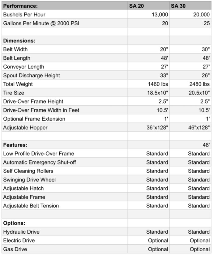 SA 20 and SA 30 Transfer Series. The Safest and Fastest Unloading Swinging Drive-Over Conveyor on the Market!
